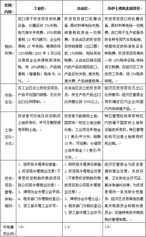 埃及各投资区域的政策比较(摘要)